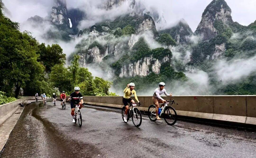 湖南张家界天门山“天路”自行车挑战赛举行,国内外选手在峰林间展开公路竞速 庹亮 摄