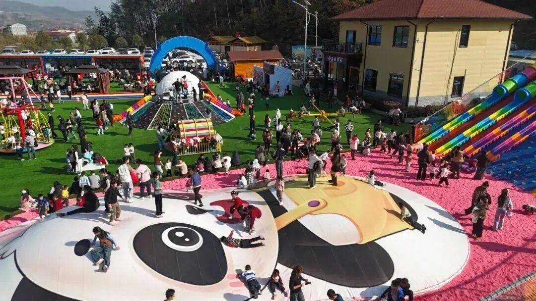 活动内容:由汉阴县两山公司打造的“花小宝”无动力乐园内有攀爬网、彩虹滑道、互动秋千等二十余种无动力设备错落布局,凭借低门槛参与、高互动体验的优势,不仅让孩子们摆脱电子设备束缚,在户外锻炼体能,既满足儿童探索挑战的天性,又设计了亲子协作类项目,让家长与孩子在共同参与中增进情感联结,实现“在自然中嬉戏,在陪伴中成长”。